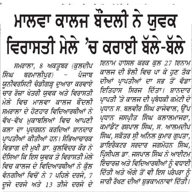 Welcome to Official Website of ABOHAR COLLEGE. The College owes its existence to the tireless efforts of late S. Ajmer Singh, former Minister, Government of Punjab, the illustrious son of soil and his team of selfless and saintly persons. The college is located on a stretch of 22 acres of prime land donated by Gram Panchayat Village Bondli on the Samra1a-Chandigarh National Highway. It is housed in a beautiful building comprising an Administrative wing, Science block, Arts block, Commerce Block, Girls' Wing, Advanced Computer Labs, large grounds and a well-furnished computerized library.